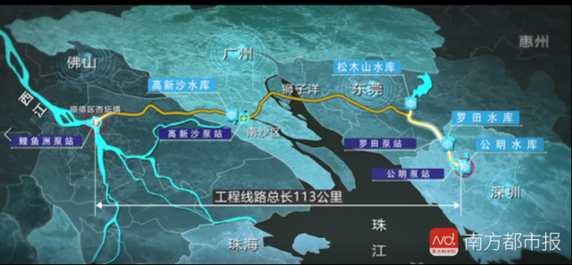 據國家發改委批文顯示,珠三角水資源配置工程由一條干線、兩條分干線、一條支線、三座泵站和一座新建調蓄水庫組成。工程西起西江干流鯉魚洲,東至深圳公明水庫,以深層管道輸水方式穿越珠三角核心城市群。